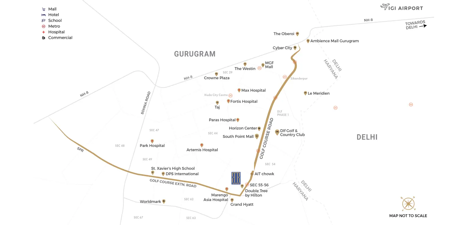 Your address mirrors your status. TREVOC Royal Residences, nestled in Sector 56 along Gurugram’s esteemed Golf Course Road, offers a unique opportunity to secure your spot in this distinguished area. Enjoy unmatched convenience with top hospitals, schools, business centres, and hotels just moments away.